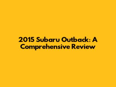 2015 Subaru Outback: A Comprehensive Review