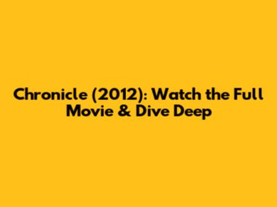 Chronicle (2012): Watch The Full Movie & Dive Deep