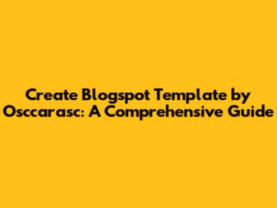 Create Blogspot Template By Osccarasc: A Comprehensive Guide