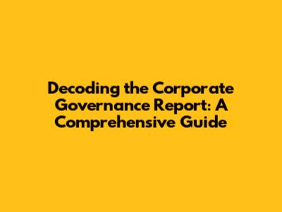 Decoding The Corporate Governance Report: A Comprehensive Guide