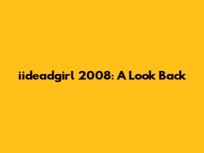 The Impact and Legacy of iideadgirl 2008