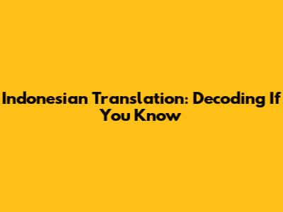 Indonesian Translation: Decoding 'If You Know'