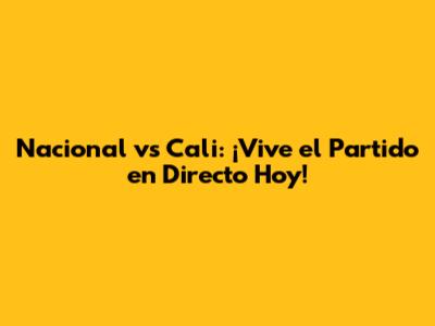 Nacional Vs Cali: ¡Vive El Partido En Directo Hoy!