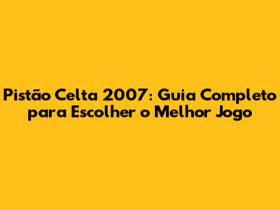 Pistão Celta 2007: Guia Completo Para Escolher O Melhor Jogo