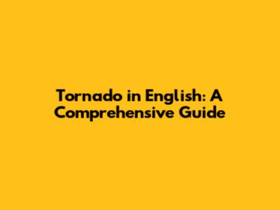 Tornado In English: A Comprehensive Guide