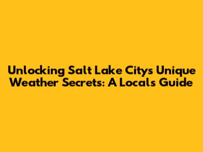 Unlocking Salt Lake City's Unique Weather Secrets